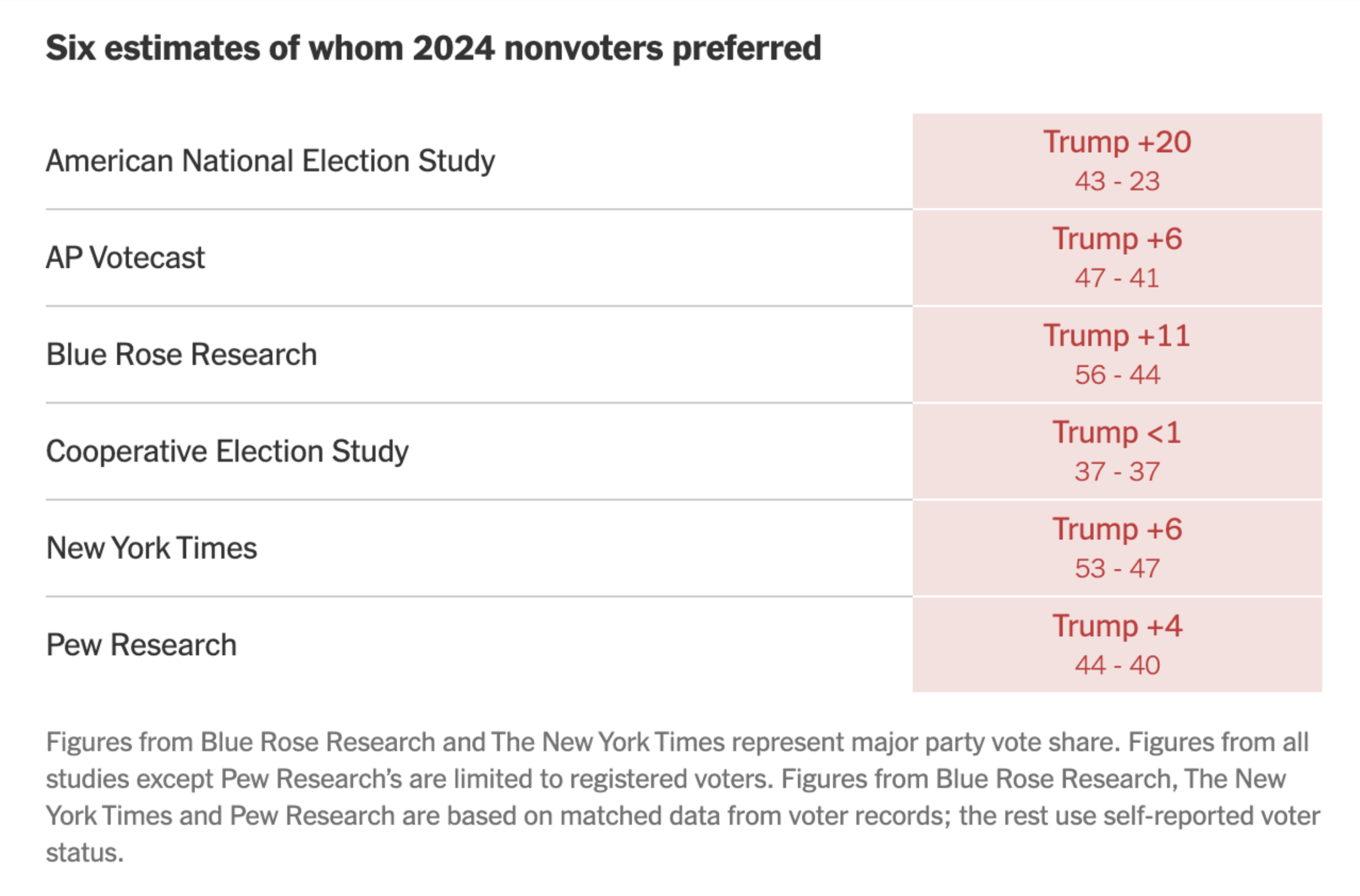 Estimates of whom 2024 nonvoters preferred | Source: The New York Times